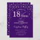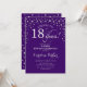 Invitation surprise 18ème anniversaire de fête. Design élégant en violet et faux argent parties scintillant. Fonctionne la police de script et les confettis de diamants. Salutations à 18 ans ! Message-moi si vous avez besoin d'une personnalisation plus poussée.