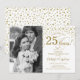 Invitation 25e Anniversaire de Mariage avec Photo. Design élégant en or et blanc avec police script et confettis. Peut être personnalisé pour afficher n'importe quelle année de mariage. À 25 ans de mariage !
