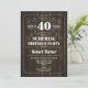 Surprise 40e anniversaire Invitation Design rétro élégant avec motif en bois. Bravo à 40 ans !