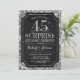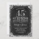 Invitation à la célébration surprise du 45e anniversaire de mariage. Design élégant et classe en noir et argent pailleté faux. Caractéristiques élégantes de la police de caractères. Envoyez-moi un message si vous avez besoin d'une personnalisation supplémentaire.