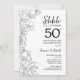 Carton d'invitation pour la célébration du 50e anniversaire de mariage Surprise botanique noir et blanc. Design moderne minimaliste avec accents botaniques et police de caractères script. Carte d'invitation florale simple parfaite pour une fête d'anniversaire surprise élégante. Peut être personnalisé pour n'importe quelle année de mariage. Cartons d'invitation Zazzle imprimés ou modèle de template numérique téléchargeable instantanément.