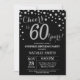 Invitation surprise 60e anniversaire avec Arrière - plan Diamant de Parties scintillant noir et argent. Confetti d'argent. Anniversaire adulte. Hommes ou femmes, anniversaire.