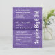 Ce design moderne en damas violet avec des lettres blanches contemporaines est une façon élégante d'invitation de vos invités à une fête de 60 ans SURPRISE. Tout le texte est totalement personnalisable. Vous pouvez modifier la couleur arrière - plan ou la couleur de texte pour un aspect différent. Bien que ce design soit présenté sur un papier de base, je vous recommande le papier d'arrivée en lin, qui donne à votre invitation une touche plus élégante, ou le papier métallique à l'hued glace de qualité supérieure, qui donnera à vos invitations un éclat festif et brillant.