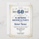 Surprise 60th Birthday Invitation Design rétro en bleu marine blanc avec un arrière - plan crémeux vintage. Salutations à 60 ans ! Peut également être personnalisé dans n'importe quelle année.