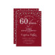 Invitation de fête du 60e anniversaire surprise. Design élégant en rouge foncé et faux argent parties scintillant. Fonctionne la police de script et les confettis de diamants. Salutations à 60 ans ! Message-moi si vous avez besoin d'une personnalisation plus poussée.