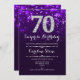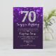 Invitation surprise 70e anniversaire. Design élégant violet avec faux argent parties scintillant. Anniversaire adulte. Dispose de diamants, lumières de livres et police de script. Hommes ou femmes anniversaire invitation. Parfait pour une fête d'anniversaire élégante. Message-moi si vous avez besoin d'une personnalisation plus poussée.
