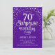 Invitation surprise 70e anniversaire de fête. Design élégant en violet royal et argent faux parties scintillant. Comprend des polices de caractères et des confettis stylisés. Message-moi si vous avez besoin d'âge personnalisé.