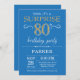 Invitation surprise 80e anniversaire avec Arrière - plan de Parties scintillant bleu et or. Tableau de bord. Anniversaire adulte. Hommes ou femmes Anniversaire Invitation. Quel que soit l'âge.