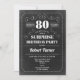 Invitation surprise 80e anniversaire. Design élégant de style rétro en noir et blanc. Fonctionne avec le motif de tableau de bord et la police de script. Parfait pour les fêtes anniversaires féminines ou masculines.