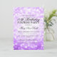 Elégant 80e anniversaire Surprise Conception d'invitation fête avec motif lumineux Parties scintillant violet, nom et date personnalisés et texte supplémentaire.