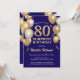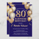 Surprise 80e anniversaire Marine Bleu et or Parties scintillant Ballons Anniversaire Invitation. Pour plus de personnalisation, cliquez sur le bouton "Customiser" et utilisez notre outil de conception pour modifier ce modèle.