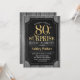 Rustic Surprise Invitation de célébration du 80e anniversaire. Design élégant et élégant en noir, faux parties scintillant or et motif en bois gris. Comprend une police de script élégante. Message-moi si vous avez besoin d'une personnalisation plus poussée.