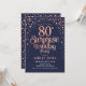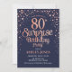 Invitation de la fête du 80e anniversaire surprise. Design élégant en or rose marine et faux parties scintillant. Comprend des polices de caractères et des confettis stylisés. Message-moi si vous avez besoin d'âge personnalisé.