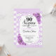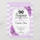 Invitation surprise 90e anniversaire. Blanc féminin, conception lilas lavande. Comprend des rayures, des roses violets pastel, des caractères de script et des confettis. Parfait pour une soirée d'anniversaire élégante. Peut être personnalisé pour montrer n'importe quel âge. Message-moi si vous avez besoin d'une personnalisation plus poussée.