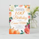 Surprise Citrouille Automne 100e Anniversaire Invitation. Ce design est agrémenté d'une jolie peinture à l'aquarelle fleurie sur un arrière - plan en bois rustique agrémenté de lampes à cordes. Cliquez sur le bouton personnaliser pour plus de flexibilité dans la modification du texte ou le déplacement des graphiques. Contactez-nous si vous avez besoin que cette conception s'applique à un produit spécifique pour créer votre propre article correspondant unique.