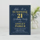 Invitation Surprise Fête d'anniversaire 21 ans - Or Navy