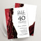 Invitation de célébration des 40 ans de surprise rubis rouge. Design moderne élégant avec fond de géode de marbre d'agate aquarelle, faux paillettes argentées et police de caractères script. Carte d'invitation élégante parfaite pour une fête d'anniversaire de mariage chic. Invitations Zazzle imprimées ou modèle de template numérique téléchargeable instantanément.