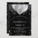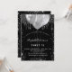 Un arrière - plan noir élégant. Décoré de parties scintillant en faux argent et de ballons. Personnalisez et ajoutez un nom, un âge et des détails de la fête. Le nom est écrit avec un script de style manuscrit