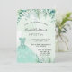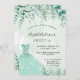 Une invitation branchée pour une Sweet 16, 16ème anniversaire fête, thème forestier enchanté. Un arrière - plan vert à l'eau avec des fougères et de la verdure d'eucalyptus, une robe verte. Le nom est écrit avec un script de style moderne écrit à la main. Personnalisez et ajoutez les détails de votre fête.