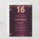 Pour un élégant Sweet 16, 16e anniversaire. Une couleur arrière - plan dégradé bordeaux. Décoré de faux éclats d'or rose. Personnalisez et ajoutez un nom et des détails du parti. Le nom est écrit avec un script de style manuscrit