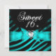 Invitation Sweet 16 Seteen Aqua Blue Black Zebra