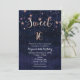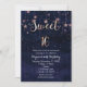 Invitation Sweet 16 Starry Night violet et or. Personnalisez les deux côtés comme vous le souhaitez, pour n'importe quel événement.