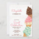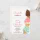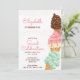 Invitation à la crème glacée, facile à customiser pour toute fête d'anniversaire d'âge, à l'invitation vos amis et votre famille pour se joindre à vous pour une "fête douce". Le design a de mignonette lettrage girly, des arroses et des cônes de crème glacée avec fraise, menthe, vanille et gélate de saveur chocolat.