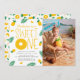 Célébrez le premier anniversaire de votre petit avec ces adorables invitations d'anniversaire à l'ananas ! Les invitations portent l'expression "Sweet One" avec un anneau d'ananas et des lettres jaunes manuscrites. De jolies illustrations d'ananas, de tranches d'ananas et de feuilles tropicaux verts entourent vos détails de fête. Personnalisez l'avant de l'invitation avec les détails de votre fête et la photo verticale. L'arrière des invitations tropicales de premier anniversaire affiche un motif d'ananas correspondant. Les invitations de la fête d'anniversaire photo sont parfaits pour les fêtes d'été ou de 1er anniversaire à thème tropical !