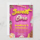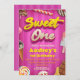 Cette invitation à l'anniversaire Sweet One allie douceur et charme avec des couleurs vives et des délices sucrés qui font ressortir la joie enfantine de chacun.