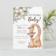 Cette invitation à baby shower personnalisée, mignonne et charmante, présente un thème illustré de safari et d'animaux de zoo. Une image douce d'un bébé et d'une girafe mère sont représentées en bas à droite. Un bouquet tropical fleuri d'orchidées blanches et de fougères est placé en haut à gauche.