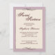Un design charmant qui présente une élégance de vieux monde avec une bordure de tourbillons en haut et en bas et l'utilisation d'une ancienne police de script. Dans un blanc cassé crémeux, bordé d'un violet lilas mou.