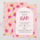The 1st Birthday Invitation is decorated with a delicate sweet strawberry pattern.