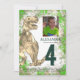 Célébrez votre petit T-Rex quatre ans avec cette amusante invitation à la fête de 5 ans T-Rex dinosaure avec modèle photo. Parfait pour poser la scène pour une fête d'anniversaire de dinosaure de jungle jurassique. aquarelle moderne verdure et feuillage et Tyrannosaurus rex effrayant pour le garçon qui aime les dinosaures. Un grand T-Rex rugit les invitations Dino fans à une amusante fête de quatrième anniversaire. La typographie verte moderne et le modèle photo qui est facile à personnaliser avec une photo du garçon ou de la fille d'anniversaire, le numéro de l'anniversaire et les détails de la fête et vous êtes tous prêt pour une fête d'anniversaire à thème dinosaure amusante. Toutes les espèces de dinosaures sont les bienvenues. Belle oeuvre originale unique de l'artiste Catherine Sweetman