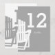 Numéro de table de chaise de plage Adirondack grise et blanche. Personnalisez et modifiez les numéros selon vos besoins et commandez individuellement.