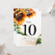 Ce numéro de table pour réception de mariage sur le thème du tournesol est parfait pour les douches de mariée, la décoration de réception de mariage, les fêtes de jardin, les mariages dans une grange et plus encore. Il présente de jolis tournesols jaunes sur un fond vintage et un lettrage noir. Chaque numéro de table doit être personnalisé et ajouté individuellement à votre panier. Les cartes de numéros de table sont recto-verso avec un espace pour ajouter les noms des mariés. Assurez-vous de modifier le texte des deux côtés. Conçu par Victoria chez VG Invites. Découvrez plus de cette thématique de mariage tournesol en visitant https://www.zazzle.com/collections/rustic_sunflower_wedding_stationery-119596324960292521