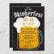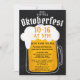 Premier festival virtuel exclusif Oktoberfest (Octoberfest) de la typographie de la fête sur le tableau noir rustique, célébrer le festival traditionnel de la bière bavaroise avec une illustration moderne d'une pinte à bière sur le bleu bavarois traditionnel. Visite virtuelle parfaite et dégustation de bière.