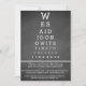 Nous avons dit "Je le veux" maintenant il est temps de célébrer est écrit de manière unique, amusante et originale sur une invitation de fête après le mariage, réception uniquement. Les invités adoreront l'originalité de notre version du tableau de Snellen transformé en invitation de fête après le mariage qui est facilement personnalisable en utilisant le modèle fourni. Si vous avez des questions ou des demandes spéciales, envoyez simplement un e-mail à zazzleinvites@gmail.com.