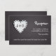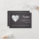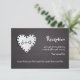 Cœur en papier sur tableau noir avec carte de réception de mariage monogramme comportant un cœur d'amour de papier de cahier avec des trous autour sur un tableau noir. Sur le cœur, il y a vos initiales. Ce modèle de mariage monogramme rustique et fantaisiste est entièrement personnalisable et est parfait pour un mariage décontracté, en particulier pour les enseignants. Texte en blanc utilisant une police qui ressemble à l'écriture manuscrite.