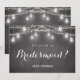 Carte d'invitation Black Bridesmaid avec lampes à cordes rustiques et bocal de mason sur un tableau noir/arrière - plan de tableau. Utilisez cette option de modèle personnalisée pour modifier le texte. | Utilisez l'option personnaliser pour modifier le style, la taille et la couleur du texte si nécessaire. Si vous n’avez pas besoin de texte, supprimez-le. Consultez notre collection de magasins ci-dessous pour plus de produits avec ce design.