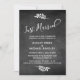 Cette carte de réception de mariage sophistiquée mais rustique présente une image de fond de tableau noir texturé surimposée d'un motif simple de branche de fleurs aquarellées en haut et en bas. J'ai ajouté une police de caractères cursifs manuscrite décontractée de ma collection pour représenter graphiquement les mots "Juste Mariés". Vos informations personnelles sont facilement ajoutées pour personnaliser ce modèle autant que vous le souhaitez. Utilisez les champs du modèle pour simplement entrer vos informations nécessaires, et cliquez pour personnaliser davantage si vous souhaitez repositionner l'une des couches déverrouillées. N'hésitez pas à me contacter pour des demandes spéciales ou pour obtenir de l'aide pour la personnalisation.
