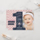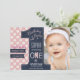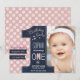 Une invitation moderne de première fête d'anniversaire pour une fille avec des points roses et un tableau noir un