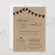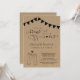 L'invitation présente une illustration de deux tacos et d'un toast à la bière dessinée à la main sur un fond en papier kraft rustique merveilleusement réalisé.