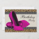 Invitation Talons Hauts Anniversaire Fête Rose Foncé Léopard