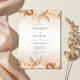 This design evokes a warm, autumnal mood with its delicate arrangement of dried botanicals and muted floral elements. The earthy color palette features soft tans and creamy whites, creating a romantic and timeless aesthetic. Subtle hints of leaves and soft blooms add a touch of natural elegance.