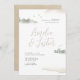 Tan Watercolor Mountain Destination Mariage Invitation. Avec une police de calligraphie chic pour vos noms et une typographie serif élégante pour vos détails mariages, avec des montagnes aquarelles, cabine, et des arbres avec quelques traits délicats de l'aquarelle de brosse dans le brun tan.