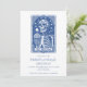 Tarot inspired birthday invitation in blue, featuring a vintage skeleton holding a cupcake inside an ornate card frame with twinkling stars. The reverse shows a matching star pattern. It blends mystical charm with a playful goth vibe, perfect for witchy or celestial themed celebrations from sweet sixteen to milestone parties. Personalize the name, date, time, location, and RSVP. Available in print, as a digital download, or both!