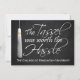 Faire-part de diplôme universitaire, avec une formulation classique classique formelle et un thème amusant. Le goûter valait le coup. Disant amusant et plein d'esprit sur tout le travail, la sueur, la détermination, le sacrifice et le dévouement qui est allé pour devenir une réussite éducative. Arrière - plan de style toile noire foncée avec un goût blanc et or et des lettres cursives. Un gardien personnalisé pour le diplômé.