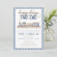 CHOO CHOO (BLEU) - Cette invitation de fête d'anniversaire pour un train Chugga Chugga Choo Choo bleu classique présente une locomotive bleue classique qui fume avec un en-tête Chugga Chugga DEUX DEUX et un adorable chapeau de conducteur en arrière-plan ! Cette invitation d'anniversaire pour un thème de train, invitation pour un 2ème anniversaire est sûr de compléter n'importe quelle fête d'anniversaire sur le thème du train Choo Choo ! En utilisant le logiciel facile à utiliser de Zazzle (aucun téléchargement nécessaire) directement dans votre navigateur, vous achetez et personnalisez tout au même endroit. C'est aussi simple que ça !