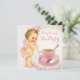 Baby shower à thé de la fille avec adorable petite fille portant un pantalon de rouille rose et un chapelet de perles. Cette adorable invitation à baby shower thé tasse de thé rose perle est facilement customisée pour votre événement en ajoutant vos détails d'événement, style de police, taille & couleur de police et libellé.