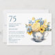 Jolie petite tasse avec fleurs bleues et jaunes printemps ou été 75ème anniversaire invitation à la fête. Cette invitation peut être achetée imprimée ou comme une invitation numérique à partager avec sa famille et ses amis sur les médias sociaux ou par e-mail. Contactez-moi pour obtenir de l'aide sur vos personnalisations ou pour demander des produits Zazzle correspondants ou coordonnés supplémentaires pour votre groupe.